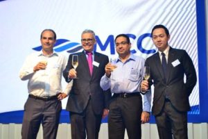 At the recent 10th year celebrations of MCC Transport Philippines were, left to right, Tim Wickmann (CEO, MCC Transport Singapore PTE. Ltd.), Klaus Nielsen (Resident Director, MCC Transport Philippines Inc.), Naresh Potty (CCO, MCC Transport Singapore Pte. Ltd), and Darwin Lee (Country Sales Manager, MCC Transport Philippines Inc.)